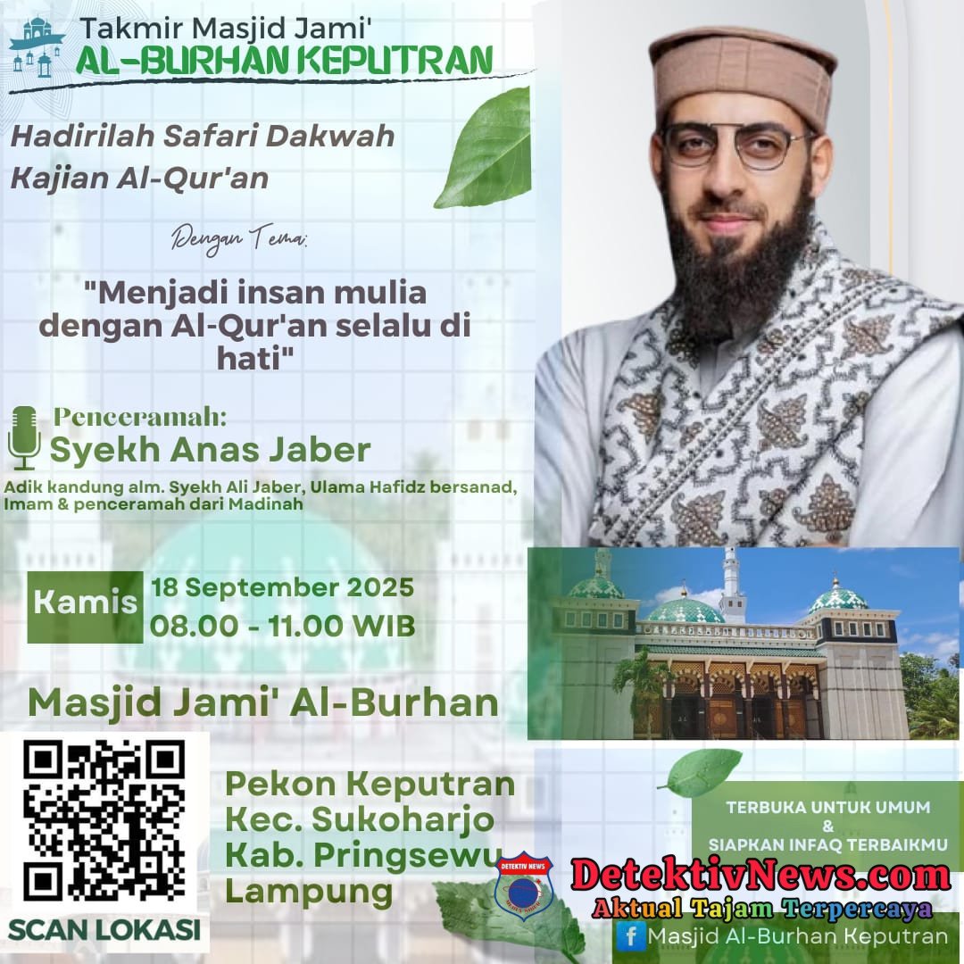 GRIB JAYA Kabupaten Pringsewu akan turut serta menghadiri kegiatan Safari Dakwah Kajian Al-Qur’an.. Yàng di isi oleh Penceramah ternama Syekh Anas Jaber.