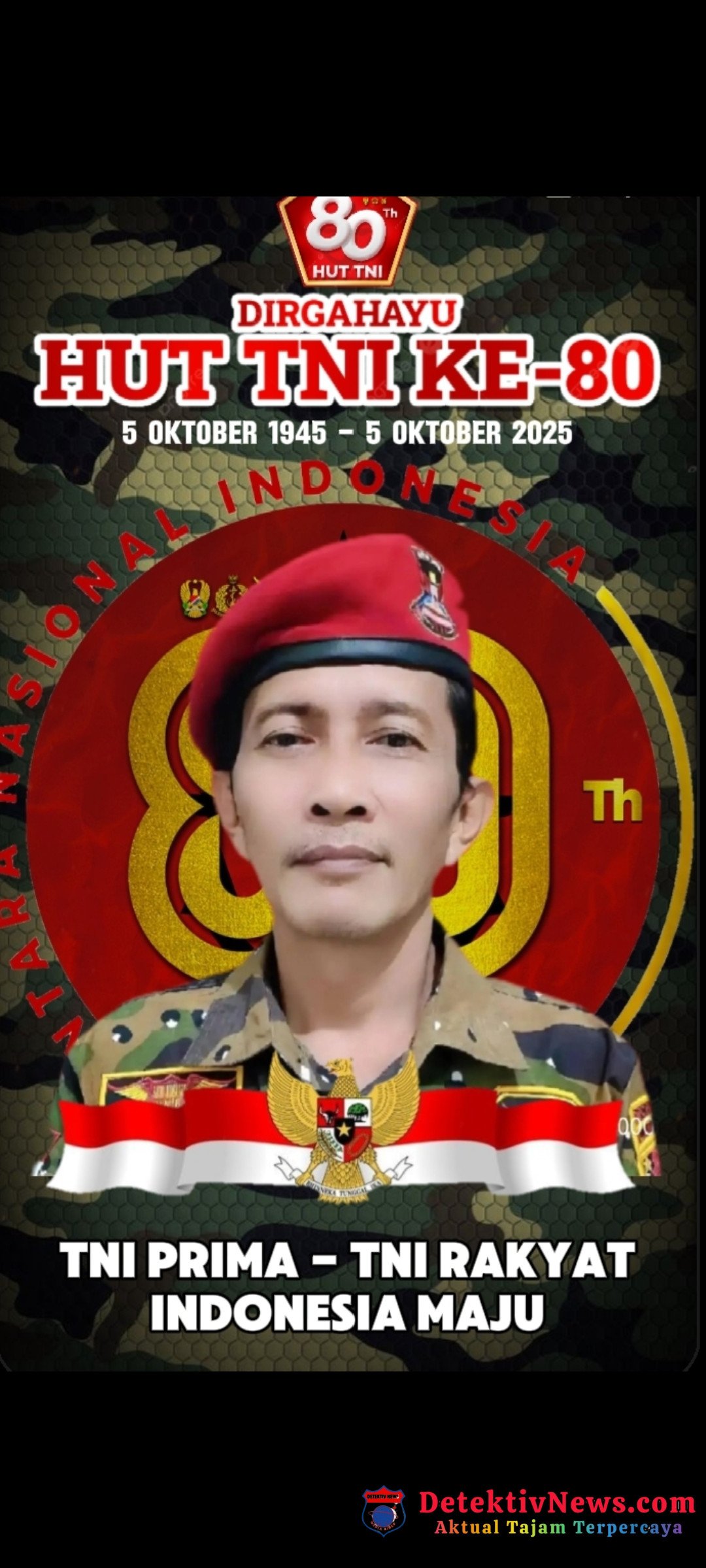 Di usia yang ke-80 ini, semoga TNI semakin jaya, semakin dicintai rakyat, dan terus menjadi garda terdepan dalam menjaga keutuhan NKRI,” ungkapnya.